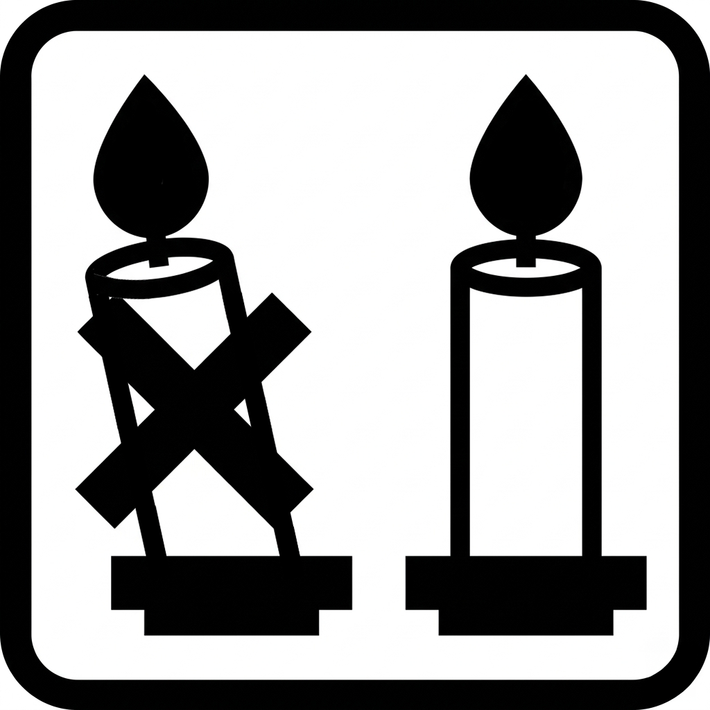 Vergessen Sie die Sicherheit nicht Alle Kerzen von Candlesphere verfügen über Sicherheitshinweise gemäß den geltenden Normen und entsprechen internationalen Standards, die durch einSGS-Zertifikat bestätigt werden. |