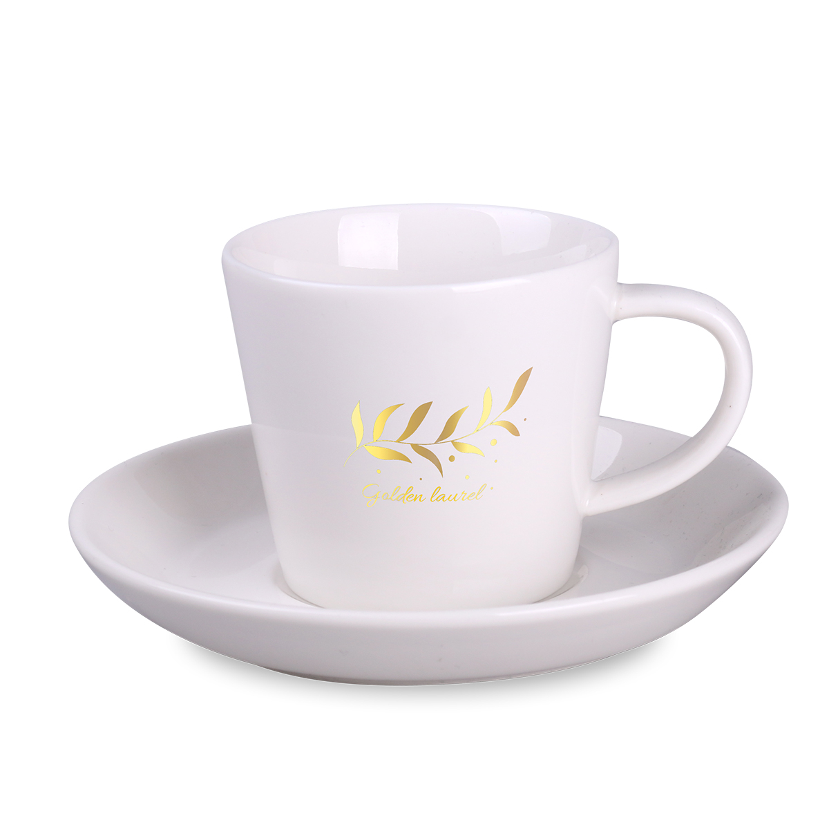 Eine Tasse mit einfacher, klassischer Form. Aus Porzellan gefertigt. Sie verfügt über einen ergonomischen Griff und bietet eine große Fläche für Verzierungen. Erhältlich in zwei Größen.