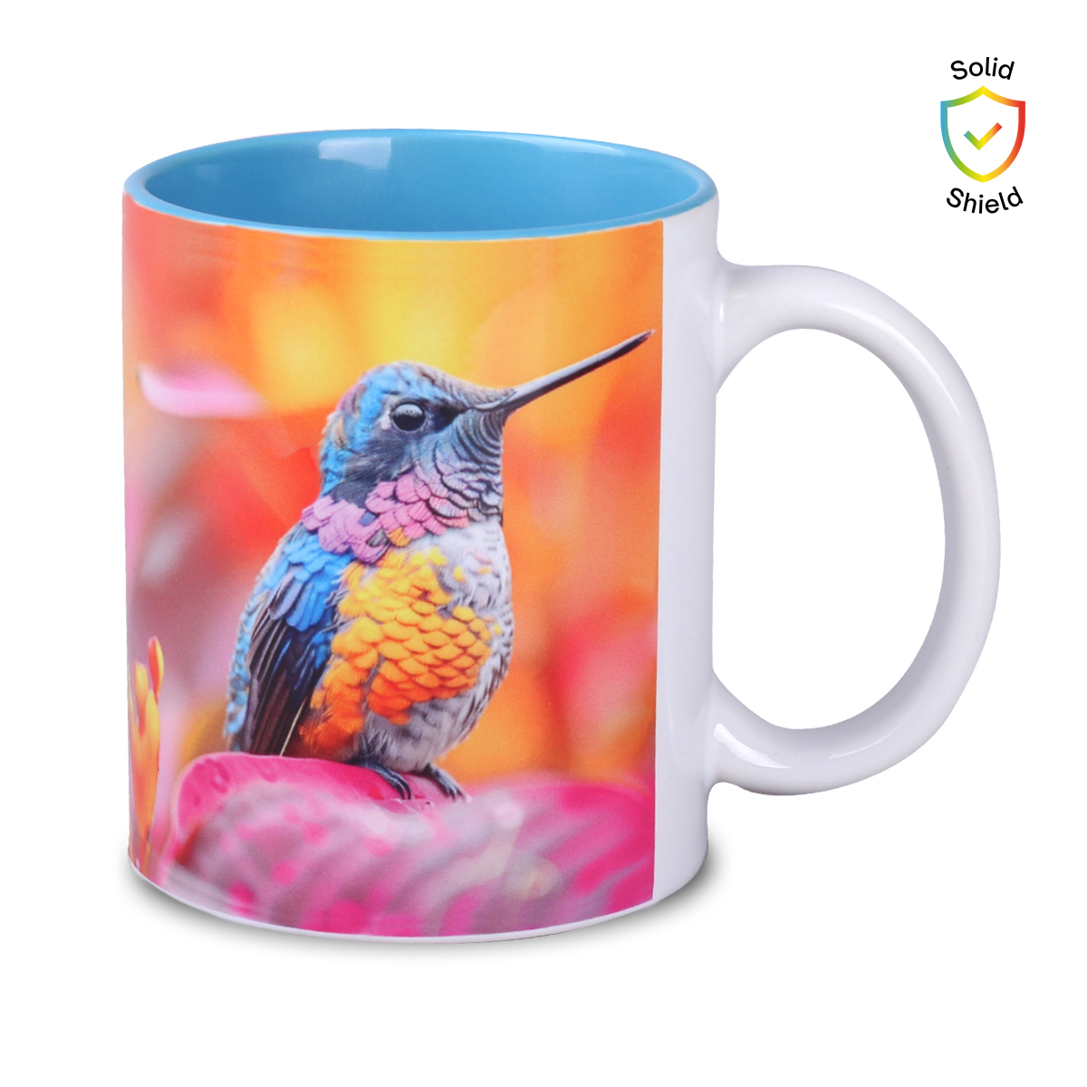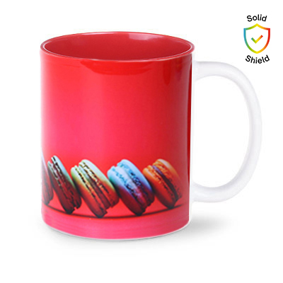 Beliebte Form mit ergonomischem Griff. Sublimationsbecher mit Solid Shield-Beschichtung, die eine Haltbarkeit der Aufdrucke von bis zu 1000 Spülgängen in der Spülmaschine garantiert. Das Modell eignet sich für hochwertige Aufdrucke.